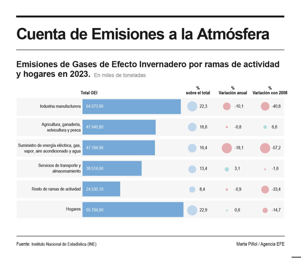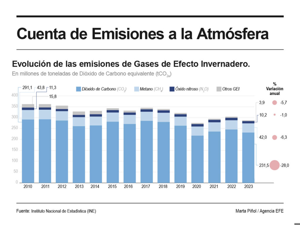 En España, las emisiones de este año bajarán el 2,4 %, en línea con la reducción de los últimos años.
