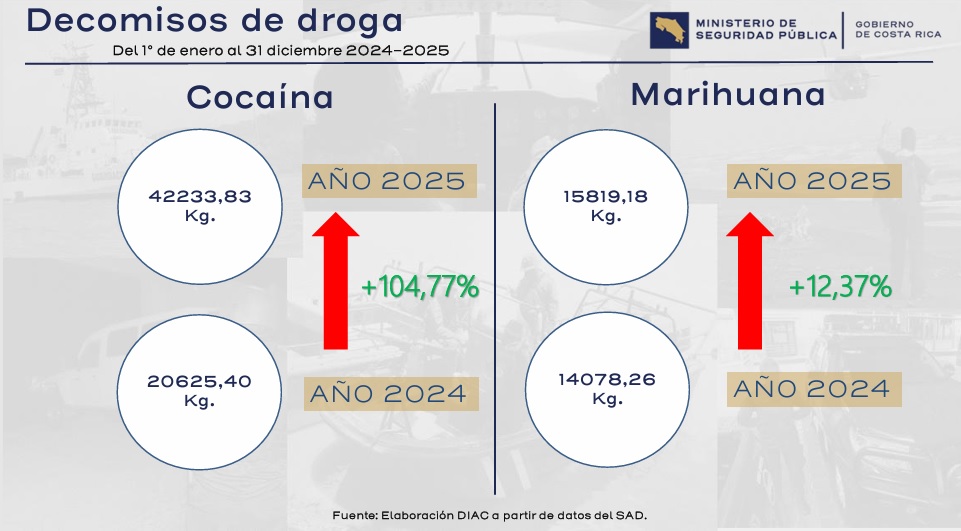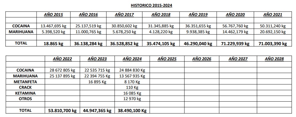 Si se suman los datos de ambas entidades, el total es de 73,3 toneladas de drogas decomisadas en el 2025.