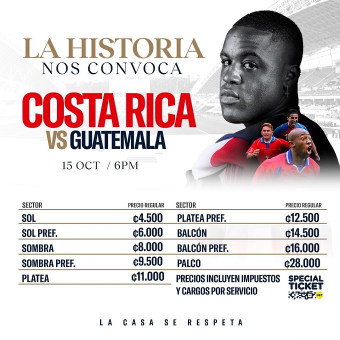 Luego de una respuesta muy positiva en la preventa, este lunes comenzó la venta de entradas al público general para el esperado encuentro entre Costa Rica y Guatemala, del próximo 15 de octubre en el Estadio Nacional a las 6 pm, como parte de la Liga de Naciones de Concacaf.