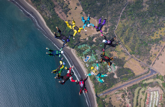 El grupo de paracaidistas está conformado por 30 campeones mundiales, 5 del salón de la fama del paracaidismo y 15 con récords mundiales.