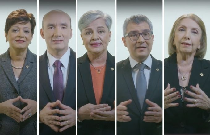 El mensaje lo dieron Eugenia María Zamora Chavarría, presidenta del TSE, Max Alberto Esquivel Faerron, vicepresidente, Luz de los Ángeles Retana Chinchilla, Hugo Picado León y Zetty María Bou Valverde.
