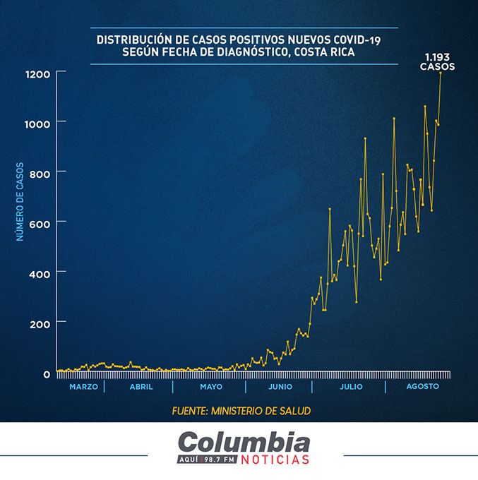 Al día de hoy Costa Rica reportó un nuevo récord de casos nuevos por COVID-19, 1.932 de los cuales 216 fueron por nexo y 917 fueron por prueba de laboratorio.
