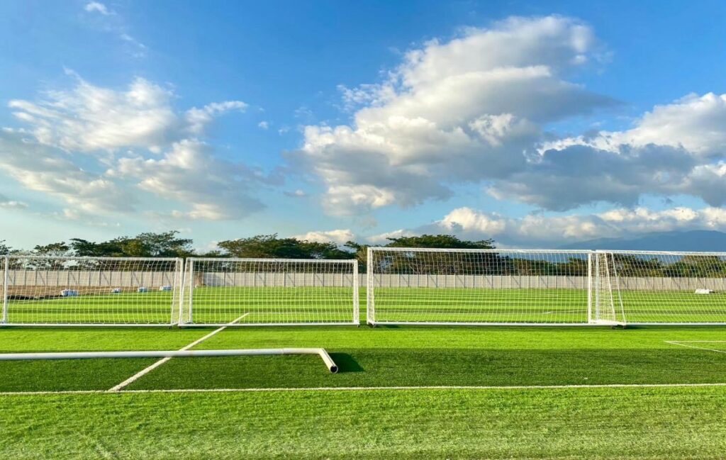 «Asimismo la cancha sintética ya está totalmente lista con los marcos instalados y la cancha de césped natural ya se muestra en su proceso planificado de crecimiento, esto a su vez gracias a la instalación y funcionamiento del sistema de riego», agregó.