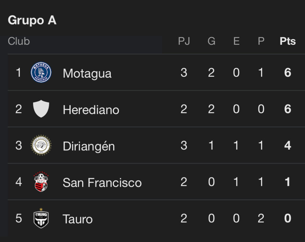 Con el 0-0, San Francisco suma su primer punto en el grupo A, que es comandado por Motagua y Herediano con seis unidades cada uno, mientras que el Diriangén llega a cuatro enteros y Tauro es colista sin puntos.