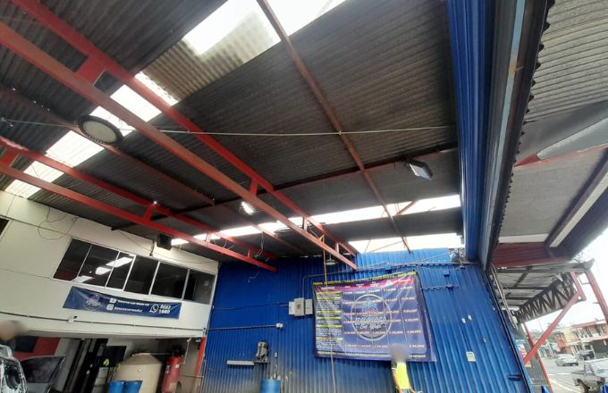 En el supermercado Megasúper del Parque de la Paz, el viento destechó una sección del local. Este sábado, varios trabajadores estaban atendiendo el problema.