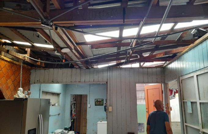 Vecinos y comerciantes de varias comunidades de San José se mantienen este sábado realizando reparaciones en viviendas y establecimientos que sufrieron daños este viernes debido a las fuertes ráfagas de viento, aguaceros y hasta un torbellino.
