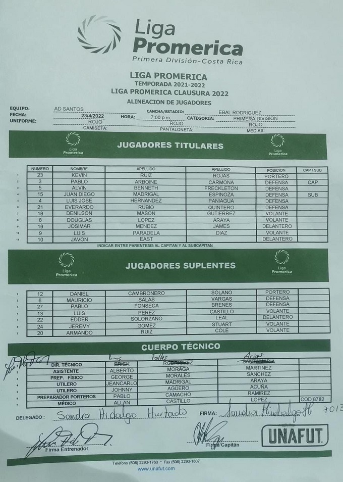 En algún momento surgió la duda cuando en la alineación que presentó Santos a los medios de comunicación apareció como técnico Erick Rodríguez, quien ya quedó fuera de la institución puesto que pasó al staff de la Federación Costarricense de Fútbol.