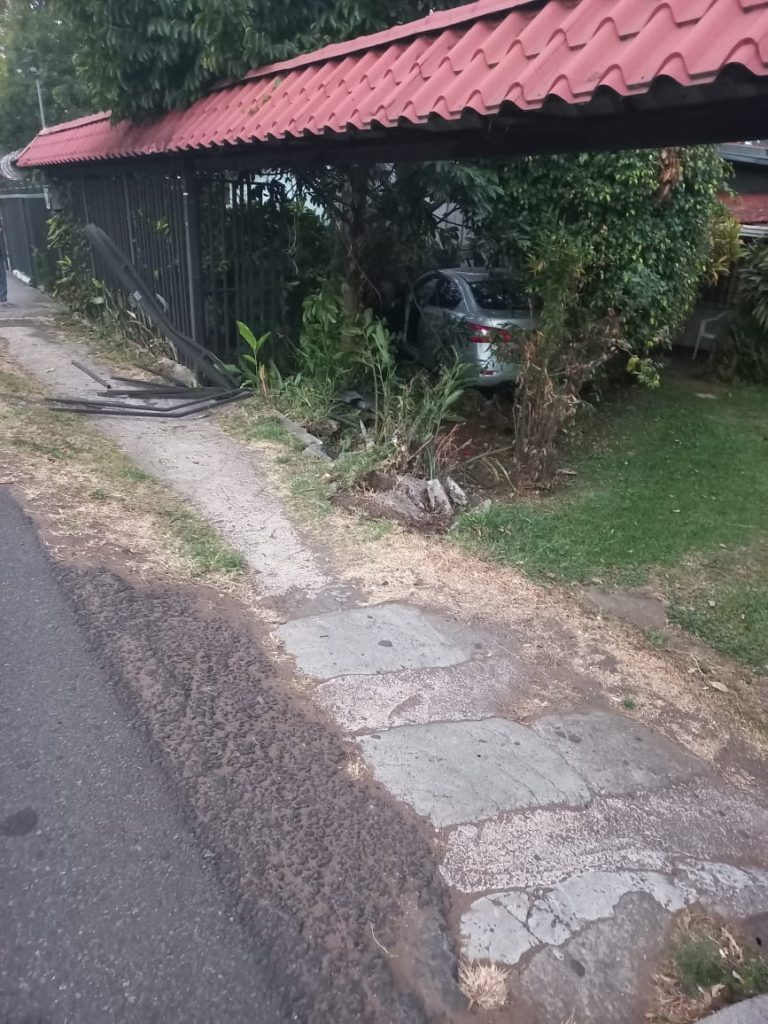 A las 5:47 a.m. de este domingo, el delantero de Saprissa Orlando Sinclair estrelló su vehículo contra el portón de una casa, en San Pedro de Montes de Oca, en los alrededores de la UCR.