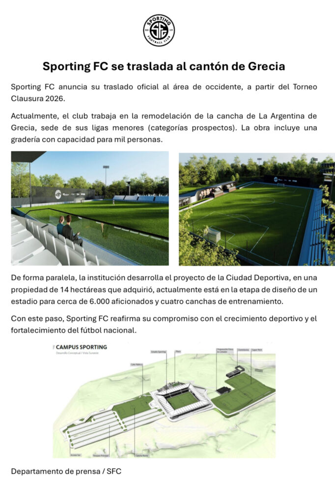 Sporting presentó oficialmente sus proyectos de nuevo estadio y Ciudad Deportiva en la Argentina de Grecia, donde actualmente trabajan sus prospectos de liga menor.