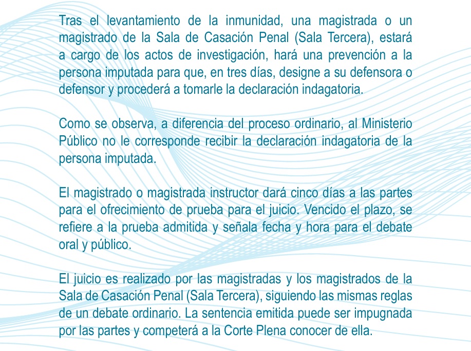 Por otra parte, si la inmunidad se levantara, comienza un proceso en el que intervienen los magistrados de la Corte Suprema de Justicia. Así lo detalla un documento del Ministerio Público: