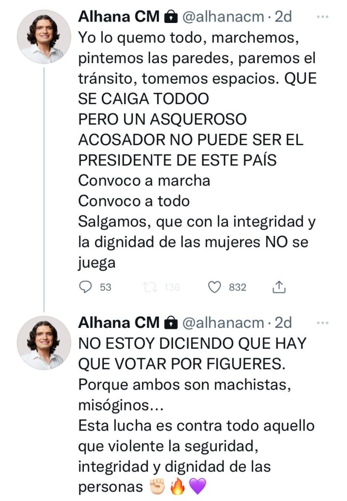 En su cuenta personal de twitter, la presidenta de la Federación de Estudiantes de la UCR, Alhana Chavarría, invitó a la población a protestar contra uno de los dos candidatos a la presidencia para la segunda ronda electoral, eso sí.