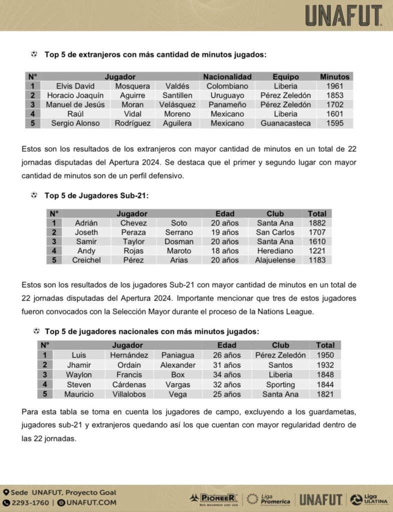 Los datos corresponden al compendio estadístico que compartió Unafut una vez finalizada la fase regular.