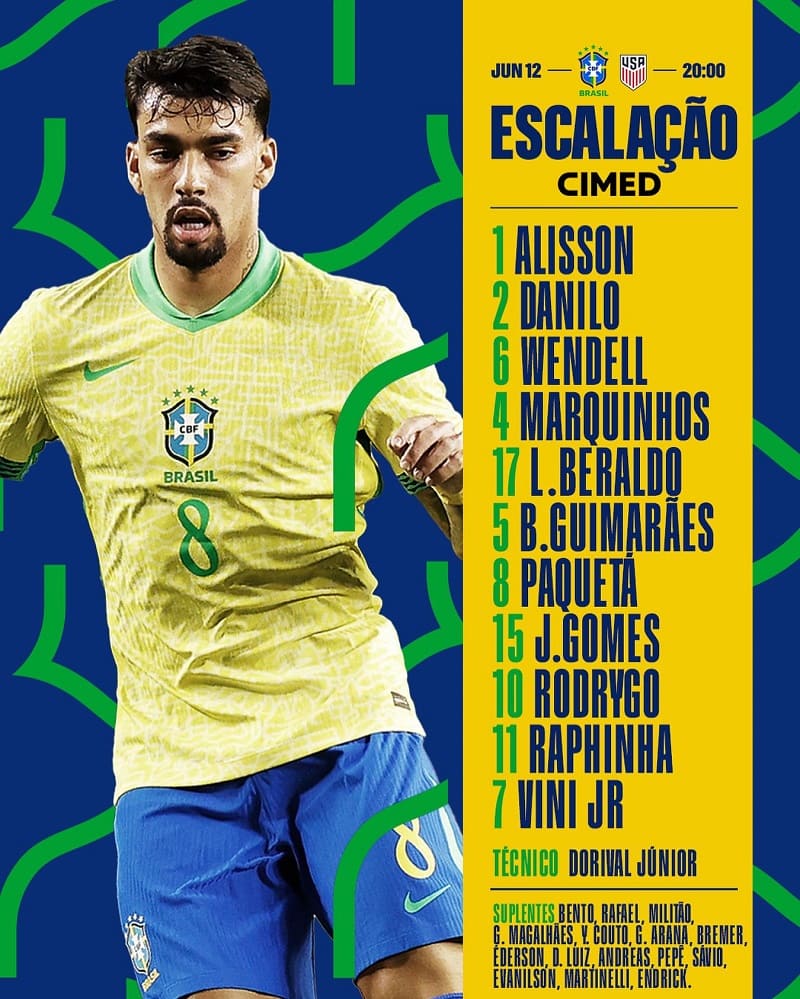 En este juego tanto Vinícius Júnior como Raphinha fueron titulares y Endrick entró de relevo en la segunda parte, por lo que la «Canarinha» arreció su ataque y creó numerosas jugadas propicias para irse adelante.