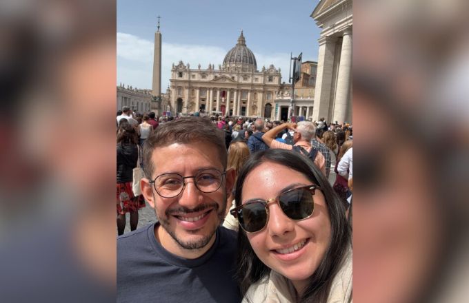 La pareja de costarricenses, David Mora Solano y Yoselyn Redondo Artavia, estuvo este domingo en el Vaticano y pudo grabar la última aparición pública del Papa Francisco.