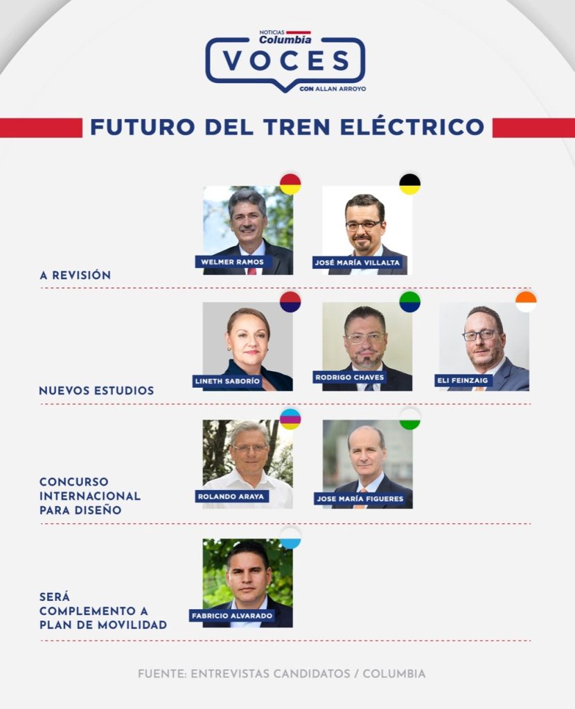 El episodio pretende ir más allá de la discusión en torno al tren eléctrico de pasajeros, sin embargo se aborda el tema y queda claro que los ocho aspirantes valoran la posibilidad de impulsar el proyecto, pero dejando de lado la propuesta de la administración Alvarado Quesada. Así respondieron: