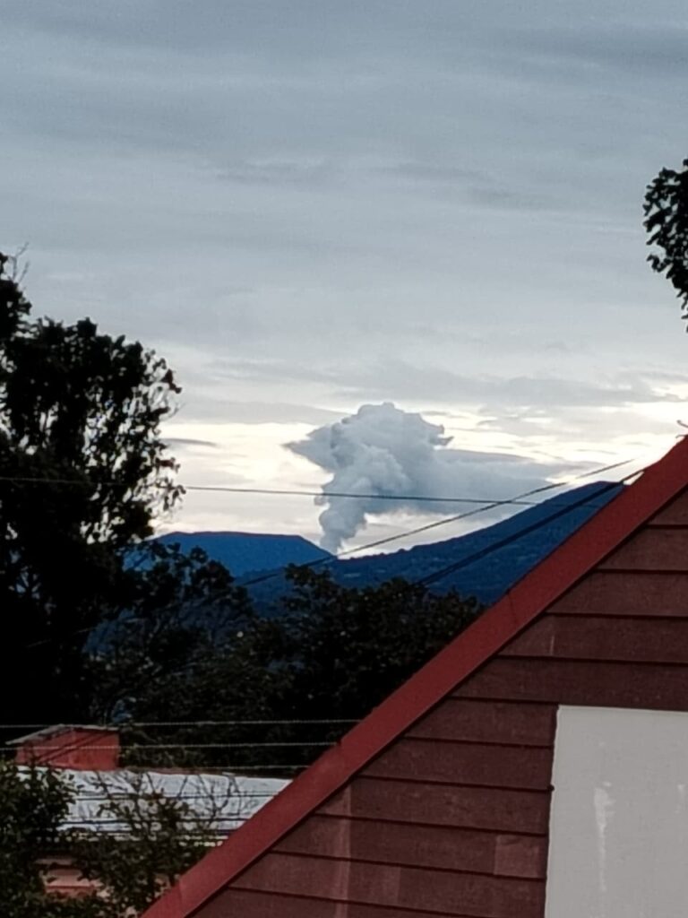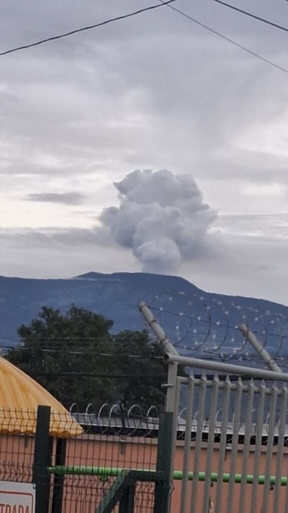 «Este tipo de coincidencia de lluvia y emisión de ceniza lo observamos la semana pasada en varias ocasiones. Esta mañana lo que observamos es nada más desgasificación, no hay ceniza. Por condiciones ambientales esta pluma se levanta de manera muy vertical y es muy visible. Por esa razón la podemos observar desde bastante distancia», añadió.