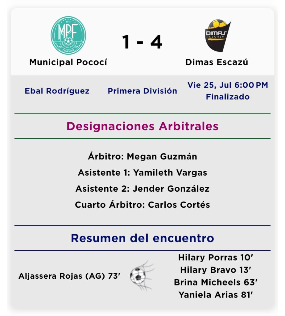 Dimas Escazú vapuleó de visitante a Pococí y Sporting derrotó de local a Herediano en el arranque del torneo 2025 de la primera división femenina.